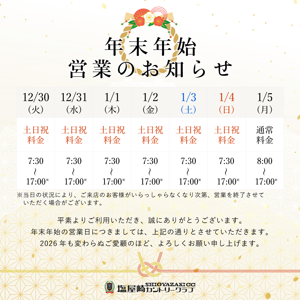 本年も一年を通して塩屋崎カントリークラブをご利用いただき、誠にありがとうございました。