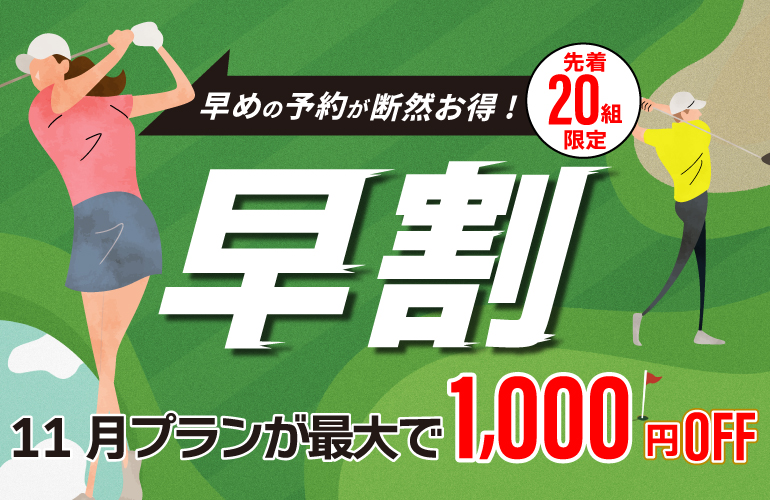 当ゴルフ場が11月にオススメする、先着20組様限定の、ゴルフをお得に楽しめる 早割キャンペーンのご案内です。